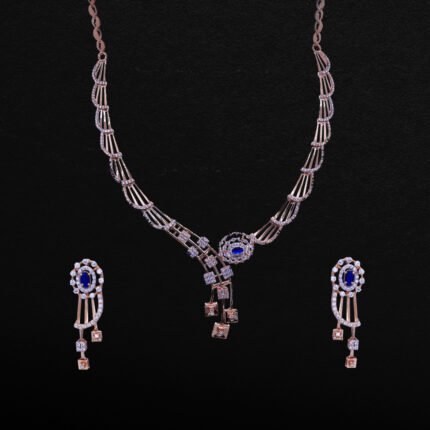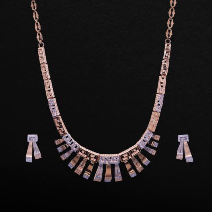 18KT Rose Gold and Diamond Fluid Necklace with Earrings