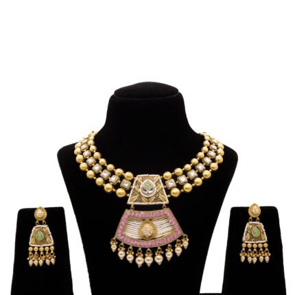 22KT Gold Grandeur Kundan Necklace with Meenakari