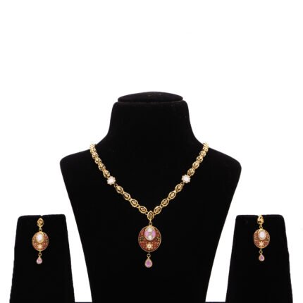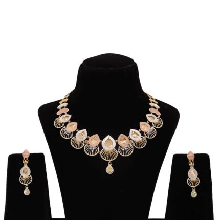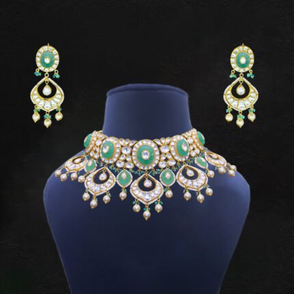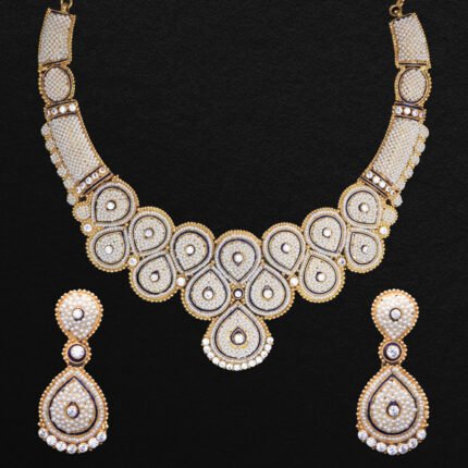 22KT Gold Glorious Kundan Polki Necklace with Earrings