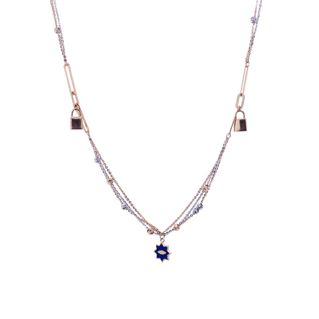 18KT Rose & White Gold Modern Multi Layered Charm Chain