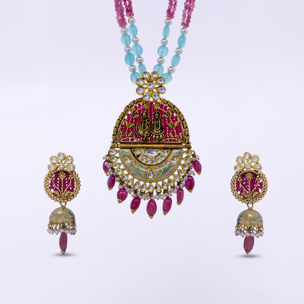 22KT Gold Timeless Temple Pendant Set with Meenakari